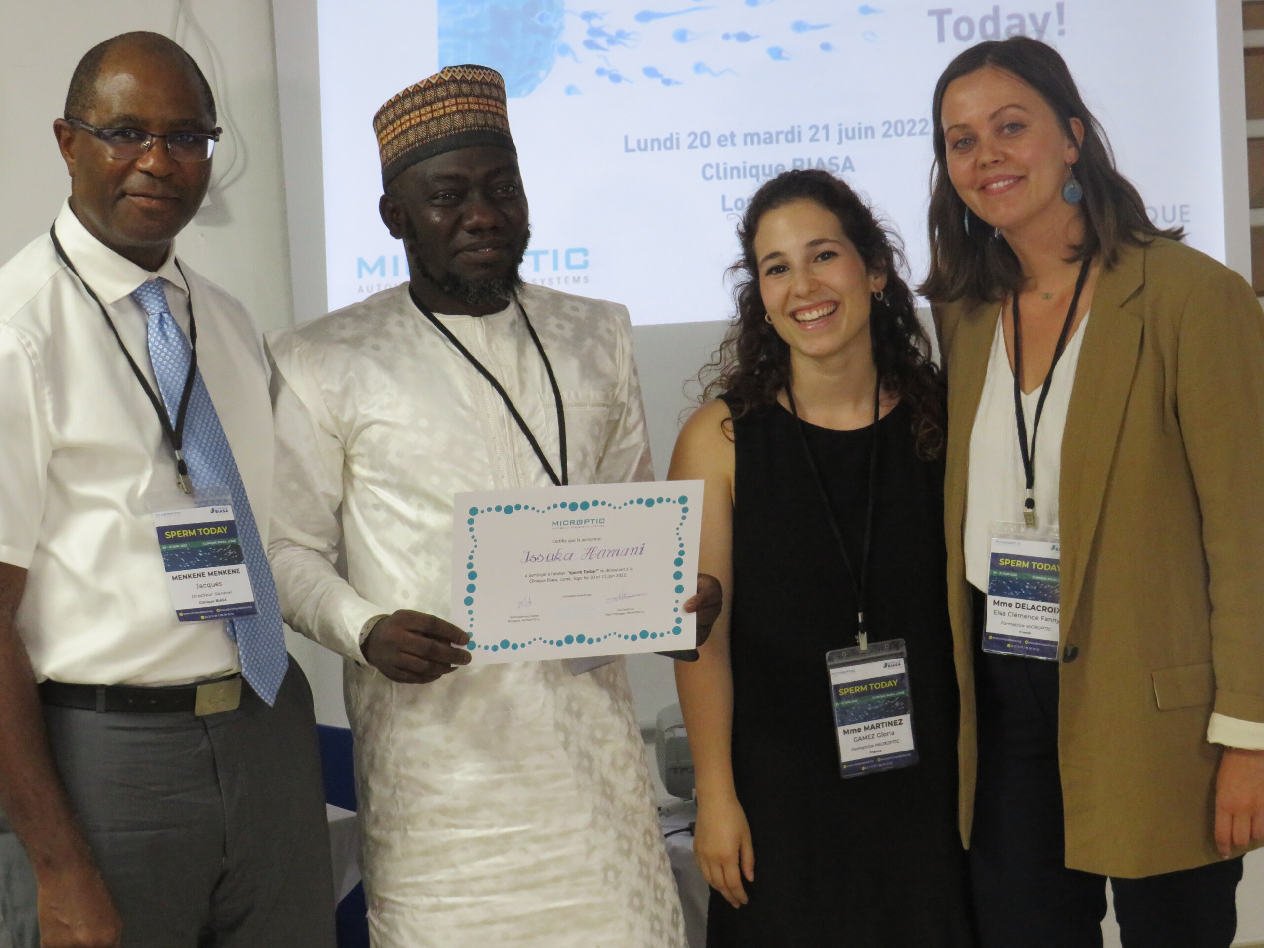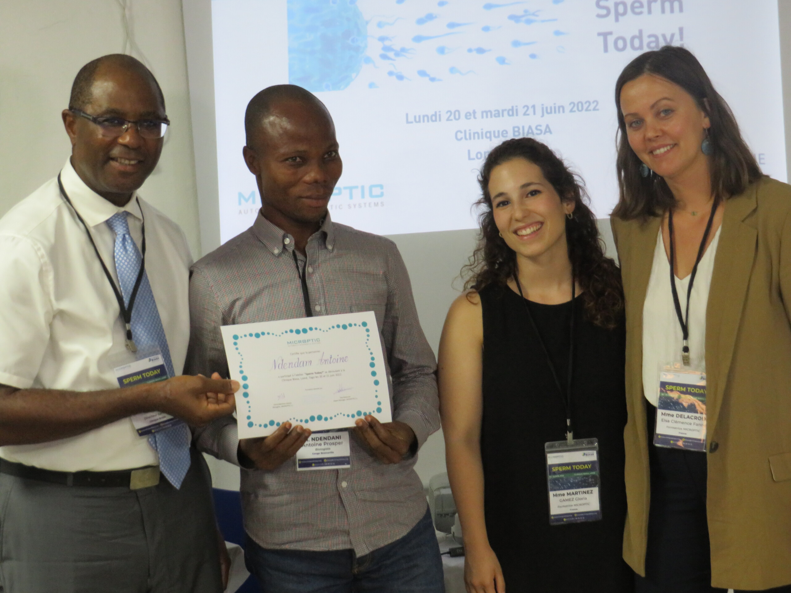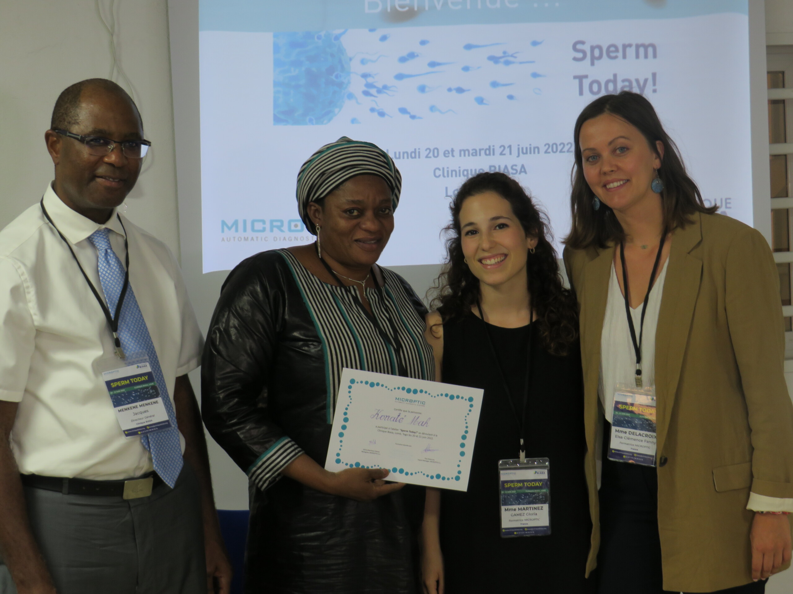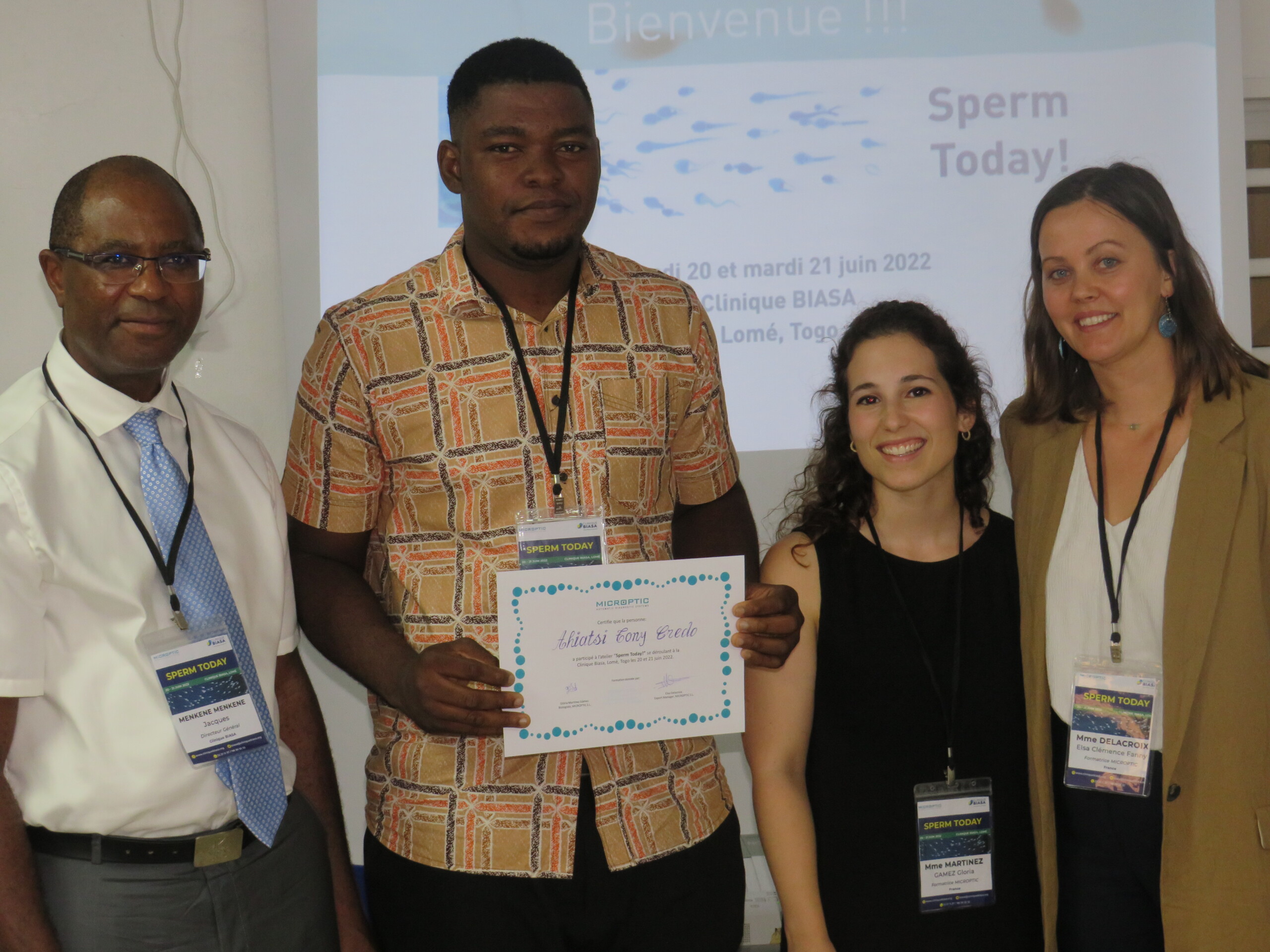 La semana pasada la Clínica BIASA organizó un taller en Togo (20-21 de junio de 2022) con la colaboración de MICROPTIC. Éste consistía en una sesión teórica y práctica, bajo el nombre de “Sperm Today!”, con las intervenciones de nuestras compañeras Elsa Delacroix (Jefa de Exportación) y Glòria Martínez (Bióloga). Los temas del evento fueron acerca del análisis de semen siguiendo los estándares de la OMS, interpretación de resultados, más allá del seminograma básico, análisis de semen manual vs automático; y sistemas CASA de Microptic (con experiencias de usuarios del SCA). Queremos agradecer a todo el equipo de la Clínica BIASA por hacer posible esta sesión, y en especial, al Dr. Moise Fiadjoe.
